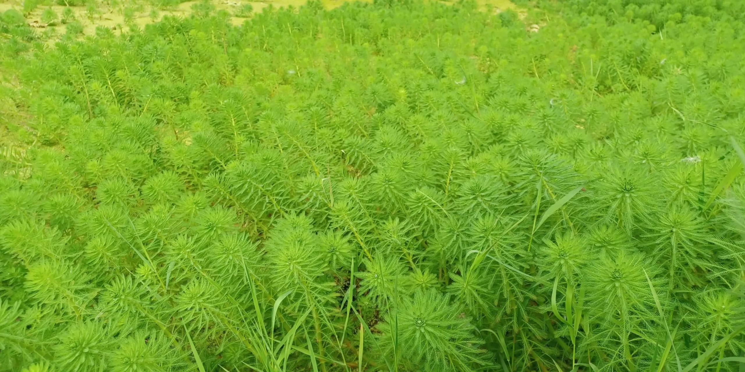 Parrot’s feather is easily recognised by its feathery, whorled leaves and tendency to form thick mats across ponds and waterways. Outside of its native range, it can only reproduce asexually through stem fragments, making it particularly difficult to eradicate once established.